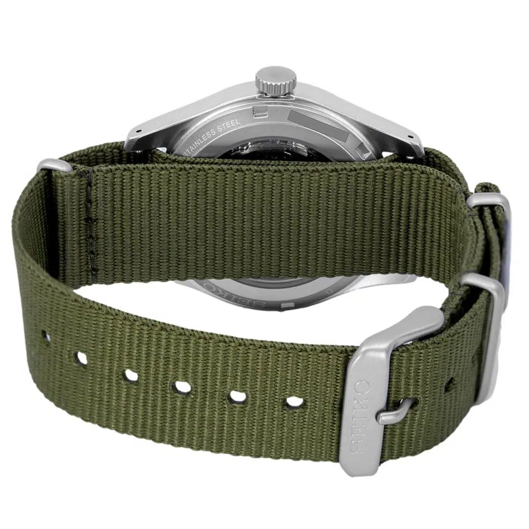 - قلب این ساعت، موتور مکانیکی و اتوماتیک کالیبر 4R36 ساخت سیکو است. این موتور نیازی به باتری ندارد و با حرکت دست شما کار میکند. همچنین، دارای قابلیت کوک دستی و “هک کردن” ثانیه است که امکان تنظیم دقیق زمان را فراهم میآورد.