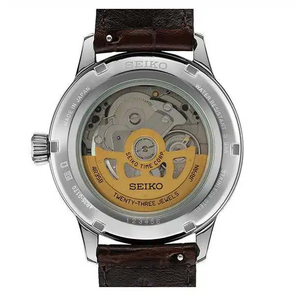 مجهز به کالیبر Seiko 4R35، یکی از موتورهای امتحان شده و محبوب در میان علاقهمندان ساعتهای مکانیکی با امکان کوک دستی (hand-winding) و توقف ثانیه(hacking)