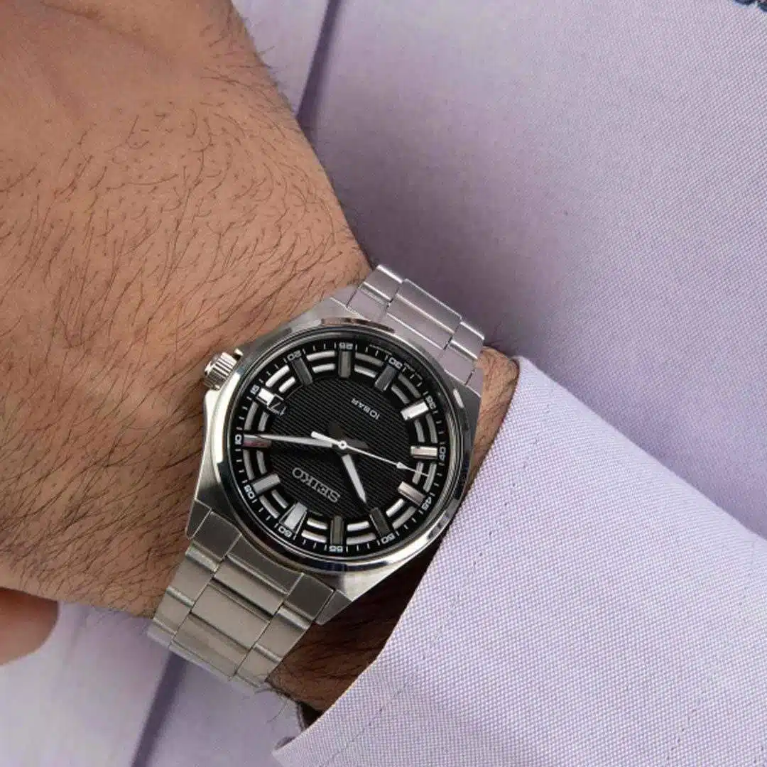 ساعت مچی Seiko SUR505P1 نمادی از وقار مدرن و دقت ژاپنیست؛ ترکیبی هنرمندانه از صفحه مشکی با بافت راهراه، قاب استیل صیقلی و عقربههایی که در تاریکی میدرخشند. این مدل ساعت مردانه سیکو، با طراحی ساده اما اثرگذار، برای مردانی ساخته شده که سادگی را انتخابی باشکوه میدانند. موتور دقیق کوارتز، مقاومت در برابر آب تا عمق 100 متر و شیشه هاردلکس مقاوم، آن را به همراهی مطمئن در تمام لحظات تبدیل میکند.⚙️ مشخصات فنی ساعت سیکو مدل SUR505P1: