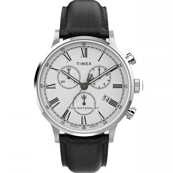 ساعت مچی مردانه تایمکس TW2U88100 از سری Waterbury Classic، انتخابی ایدهآل برای آقایان خوشسلیقهای است که به دنبال ساعتی کلاسیک و در عین حال کاربردی هستند. این مدل با طراحی شیک خود، قاب استیل ضدزنگ و بند چرم طبیعی مشکی، جلوهای خاص به استایل شما میبخشد. ویژگیهای برجسته این ساعت شامل کرونوگراف دقیق، نور پسزمینه اختصاصی INDIGLO برای خوانایی در تاریکی و مقاومت در برابر آب تا عمق ۵۰ متر است. با موتور کوارتز دقیق و طراحی مینیمال، این ساعت ترکیبی از زیبایی، دوام و کارایی را به شما ارائه میدهد.