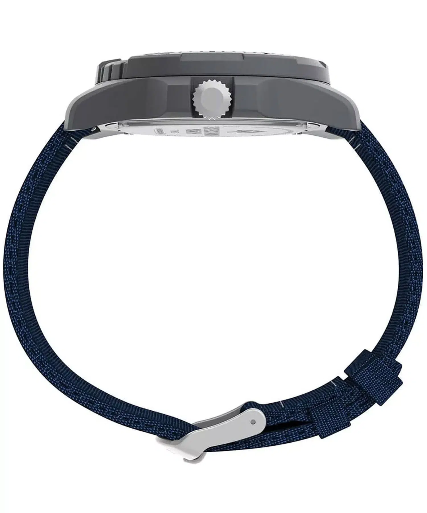 ساعت مچی تایمکس (Timex) رفرنس TW2V40300 که از مجموعه Expedition North Freedive Ocean است، یک مدل ماجراجویانه با تمرکز بر پایداری محیط زیست است. این ساعت با بدنه ۴۶ میلیمتری که از پلاستیک بازیافتی از اقیانوسها ساخته شده، تعهد تایمکس به حفظ طبیعت را نشان میدهد. موتور کوارتز سولار (Solar-Powered) آن، با جذب انرژی از نور خورشید و نور مصنوعی، نیاز به تعویض باتری را از بین میبرد و آن را به یک ابزار مقرونبهصرفه و دوستدار محیط زیست تبدیل میکند. صفحه ساعت با طراحی مینیمال و نشانگرهای شبنما، در کنار بند برزنتی بادوام و راحت، خوانایی و کارایی بالا را تضمین میکند. همچنین، مقاومت در برابر آب تا عمق ۵۰ متر (5ATM) و وجود نمایشگر تاریخ، این ساعت را برای استفاده روزمره و فعالیتهای خارج از منزل مناسب میسازد، و آن را به گزینهای ایدهآل برای علاقهمندان به محیط زیست و ماجراجویی تبدیل میکند.